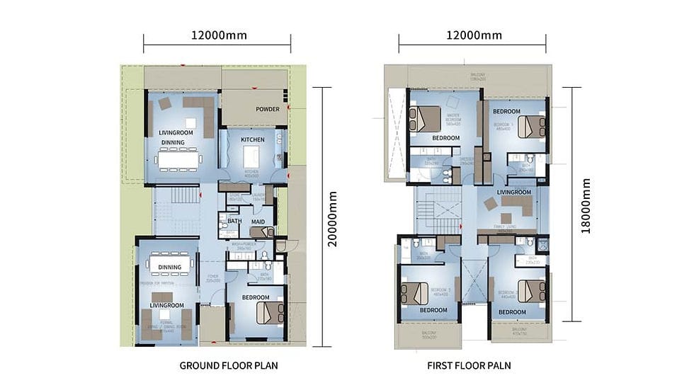 Designed with a modern touch, this villa features a sleek and stylish interior, constructed with high-quality materials. The house has a width of 12 meters and a length of 20 meters, with a ground floor area of 197.11 square meters and a first-floor area of 190.06 square meters.