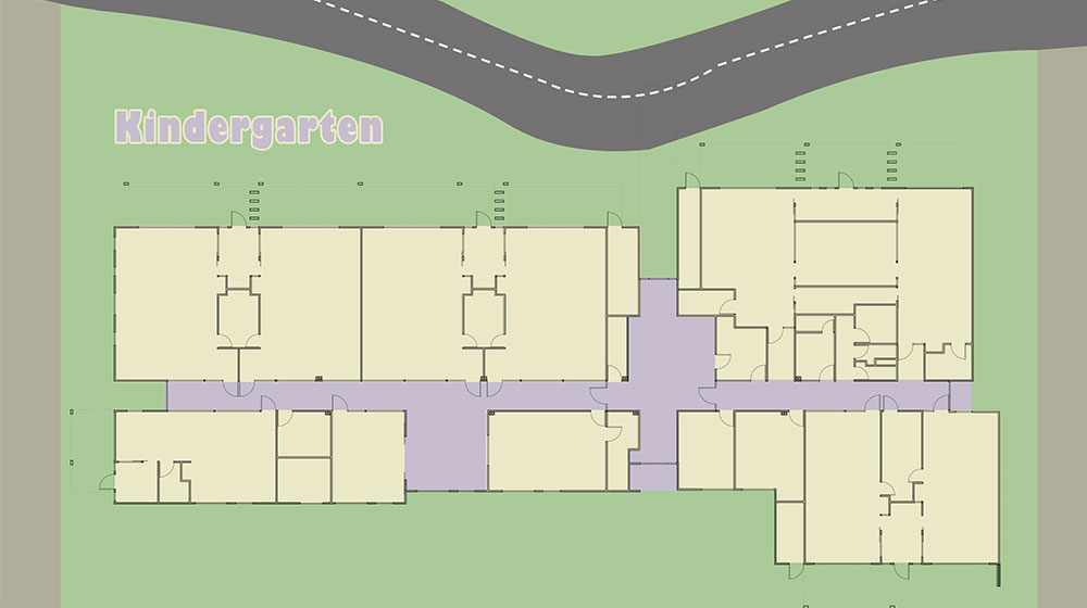 A key feature of the design is the strategic placement of bathrooms between classrooms. This layout ensures easy and safe access for children while minimizing disruption to classroom activities.