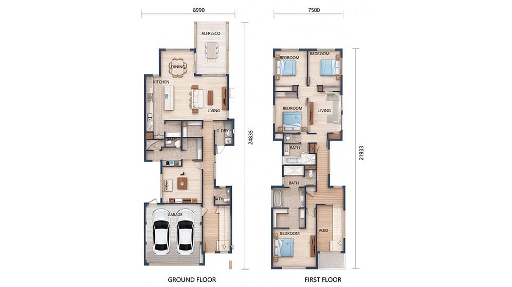 Bordeaux House is a sophisticated two-story villa with a total area of 309.76㎡, designed for modern family living. This spacious home features 5 bedrooms, 3 living rooms, 1 kitchen, 4 bathrooms, and 2 garages, offering both comfort and functionality for a luxurious lifestyle.