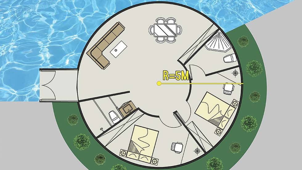 With a generous diameter of 10 meters, the cabin’s interior is surprisingly spacious and thoughtfully designed. A delightful surprise awaits within – two separate bedrooms, each accompanied by its own private bathroom. This ingenious layout ensures the utmost privacy and comfort for guests, making the cabin an idyllic haven for families, couples, or individuals seeking an unforgettable retreat.
