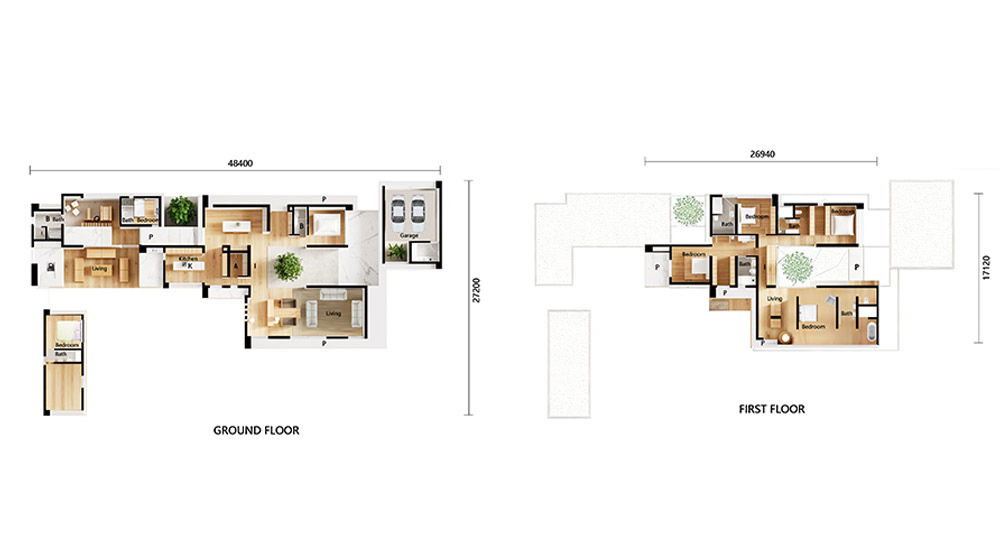 Spanning two floors, the residence offers a perfect separation of functions. The ground floor is dedicated to living and vitality, featuring a bright, spacious living room that flows into a sleek kitchen. It also houses a generous two-car garage, a fully-equipped home gym, and a dedicated office space—catering to both wellness and productivity. A strategically placed, self-contained bedroom suite with a bathroom offers privacy and flexibility.
