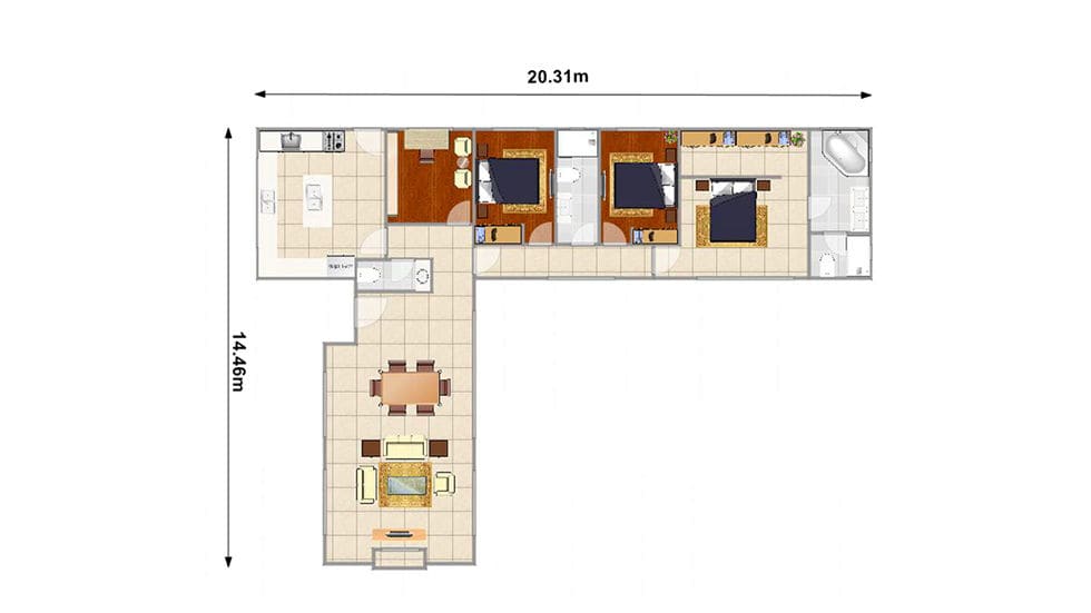The Piriz House features a spacious living room and a modern kitchen, perfect for socializing and entertaining guests. The three bedrooms are designed to be cozy and comfortable, offering a peaceful environment for rest and rejuvenation. Each bedroom comes with an ensuite bathroom, providing maximum privacy and convenience for the occupants.The light steel frame construction method used in the building’s design provides structural stability and allows for a faster and more efficient construction process.