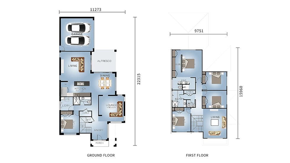 The first floor of the Ellen House comprises four spacious bedrooms, including a master bedroom with a walk-in robe and an en-suite bathroom. The remaining three bedrooms share a modern bathroom, and there is also a living area that can be used as a family room or entertainment area.
