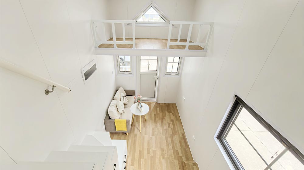 Up the custom staircase, the clever dual-loft design unfolds. Two separate sleeping areas provide perfect privacy for couples or a fun, secure space for families, making it an ideal retreat for parents and children alike.